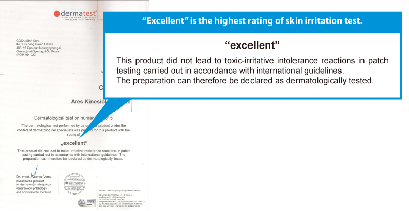 Ares Kinesiology tape has received the highest rating after dermatological skin test |